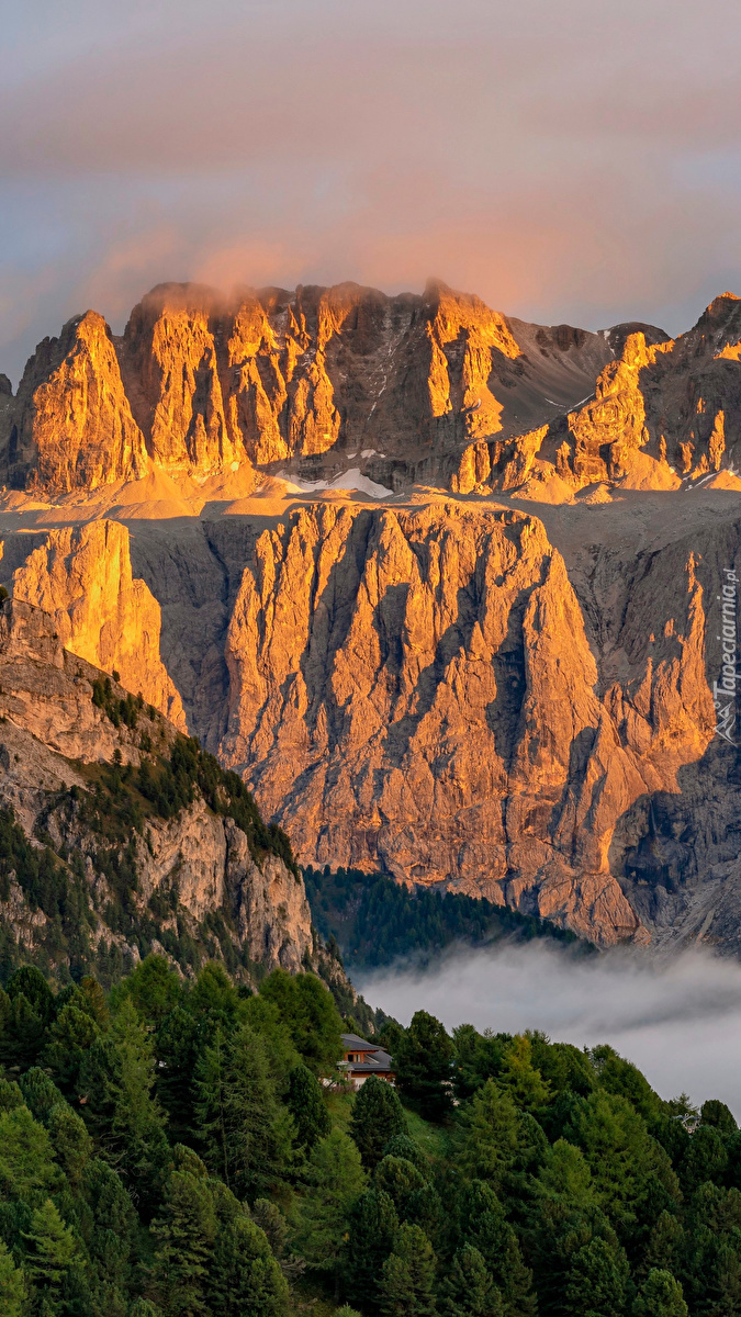 Edytor tapety: Rozświetlone góry nad zamgloną doliną