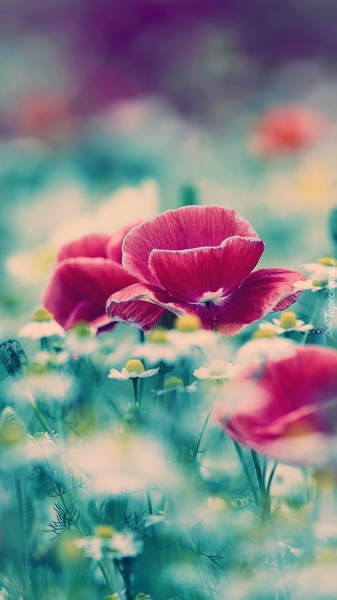 Edytor tapety: Rozwinięte maki i rumianek