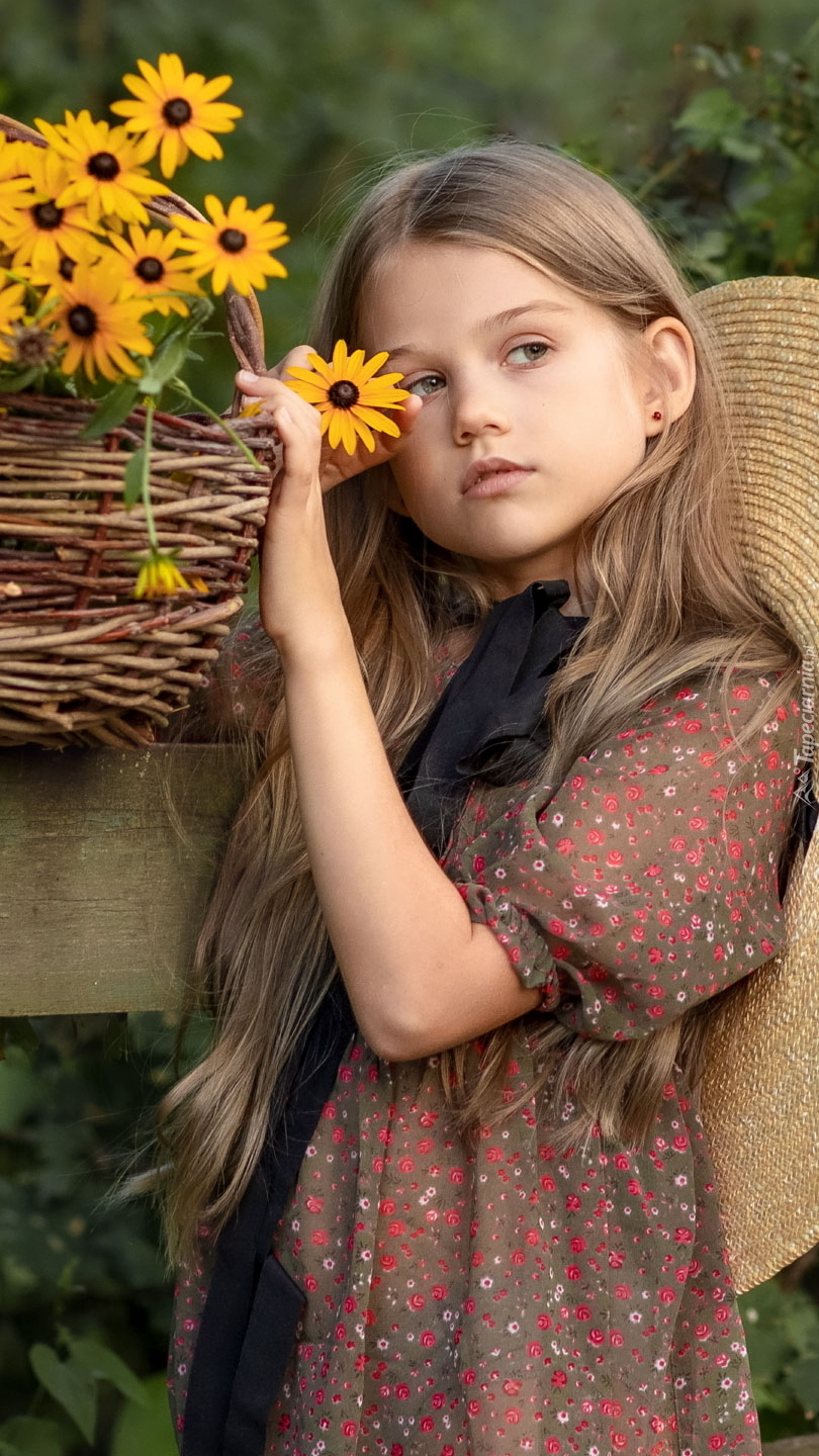 Edytor tapety: Dziewczynka z rudbekiami w koszu