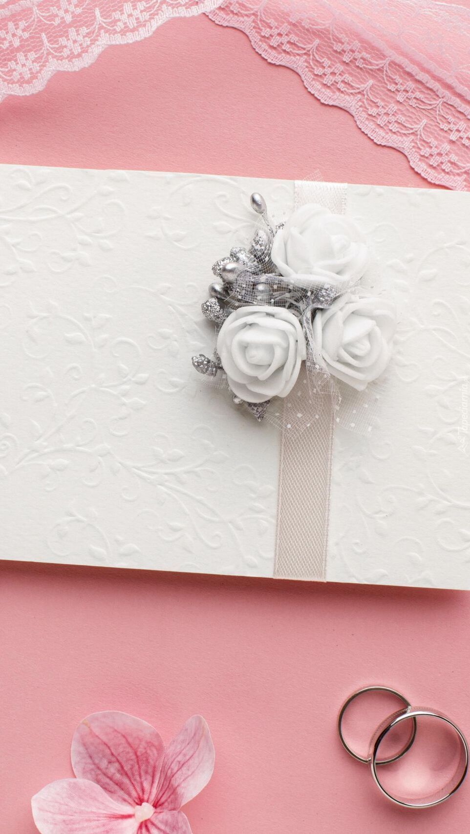Edytor tapety: Zaproszenie ślubne obok obrączek