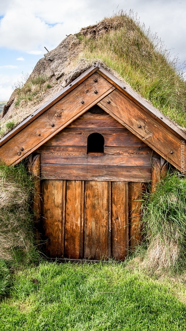 Edytor tapety: Drewniany domek porośnięty trawą
