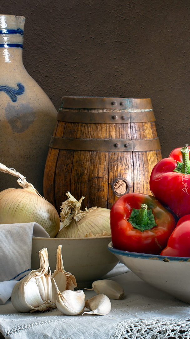 Edytor tapety: Warzywa obok beczułki