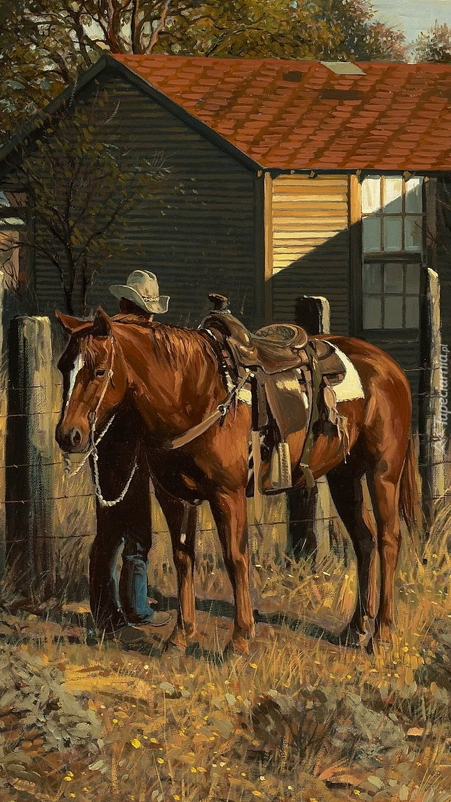Edytor tapety: Jeździec przy koniu na pastwisku
