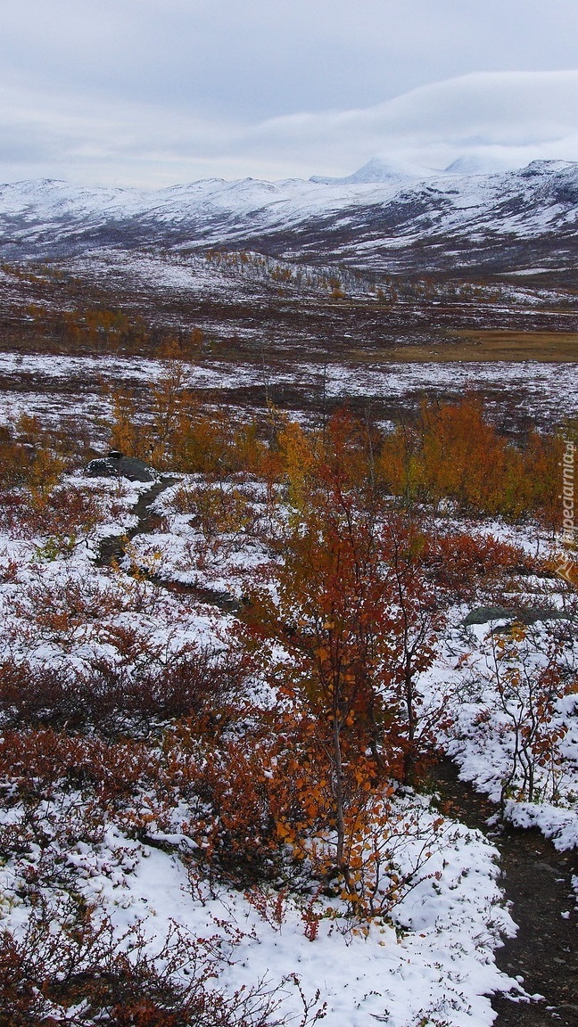 Edytor tapety: Kolorowe rośliny w śniegu