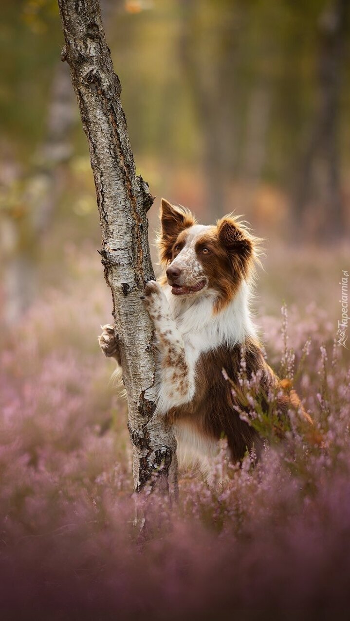 Edytor tapety: Border collie oparty o drzewo