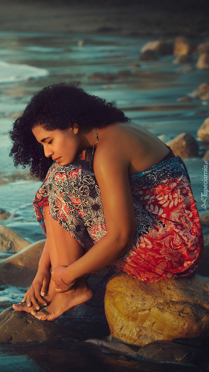 Edytor tapety: Kobieta nad brzegiem morza