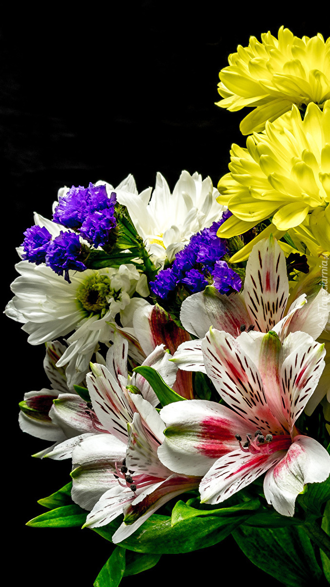 Edytor tapety: Alstremerie i chryzantemy w bukiecie