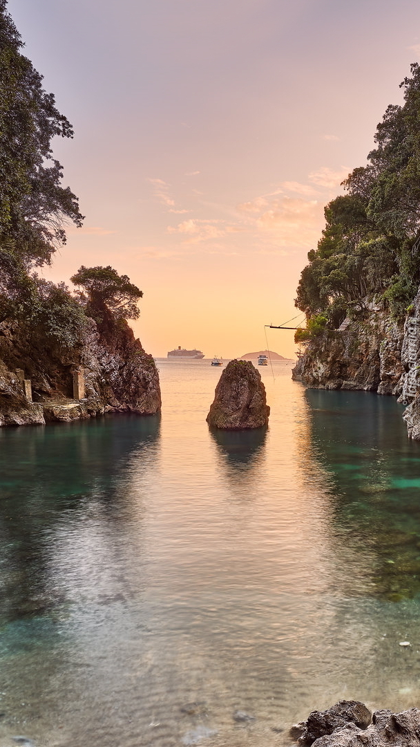 Edytor tapety: Drzewa na skałach w zatoce
