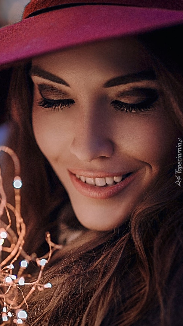 Edytor tapety: Kobieta w bordowym kapeluszu