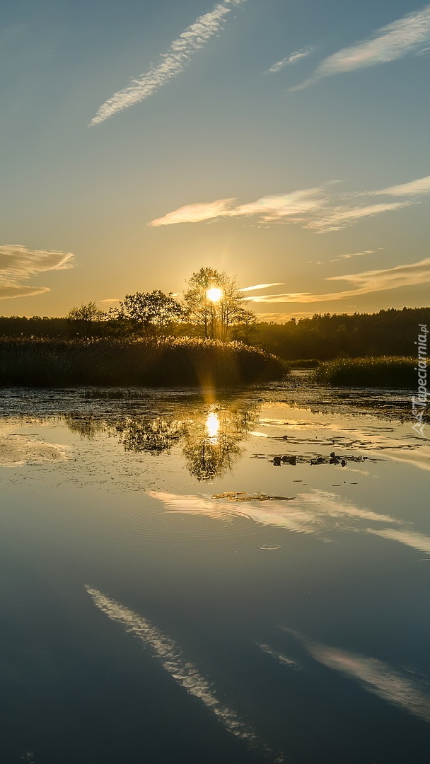 Edytor tapety: Wschód słońca nad jeziorem