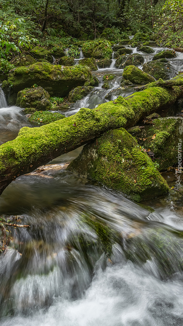 Edytor tapety: Powalone drzewo i głazy w strumieniu
