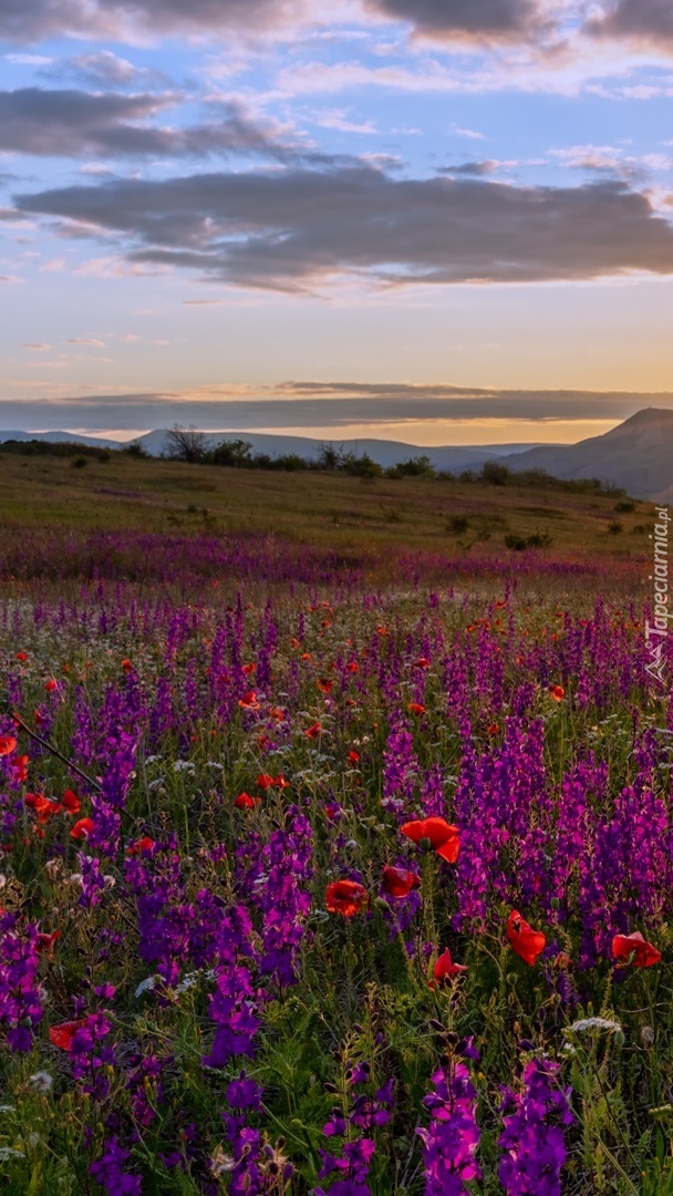 Edytor tapety: Fioletowe kwiaty na łące