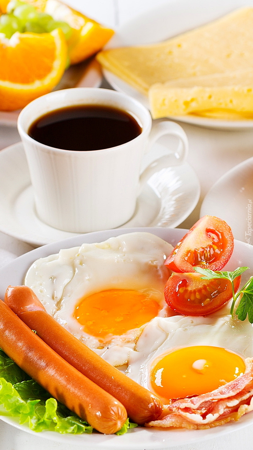 Edytor tapety: Jajko sadzone i parówki na śniadanie