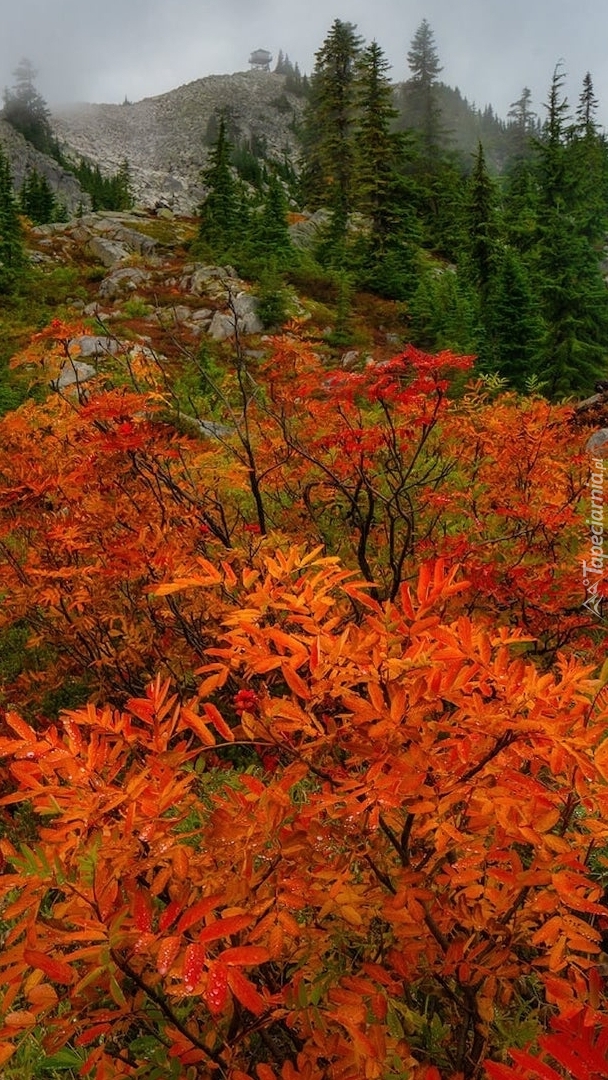 Edytor tapety: Kolorowe krzewy na wzgórzu