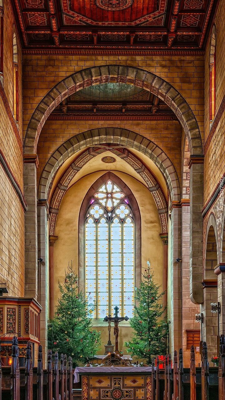 Edytor tapety: Choinki przy ołtarzu w kościele