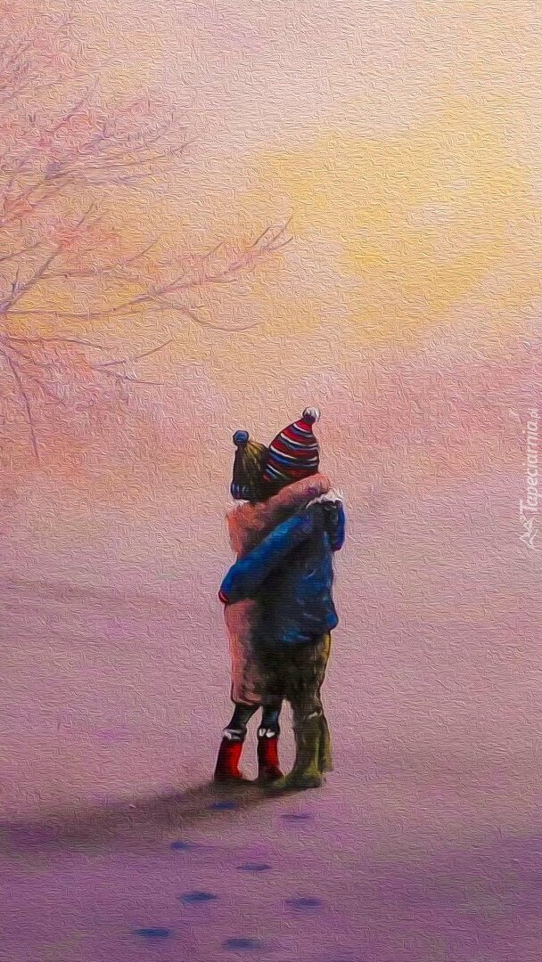 Edytor tapety: Przytulone dzieci na śniegu