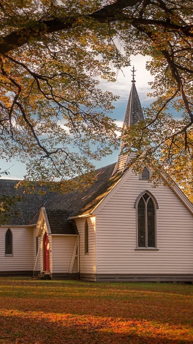 Edytor tapety: Jesienne drzewa przy kościele Christ Church