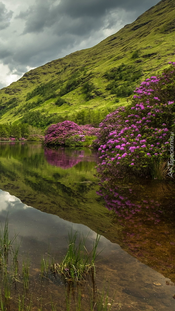 Edytor tapety: Różaneczniki na brzegu jeziora Lochan Urr