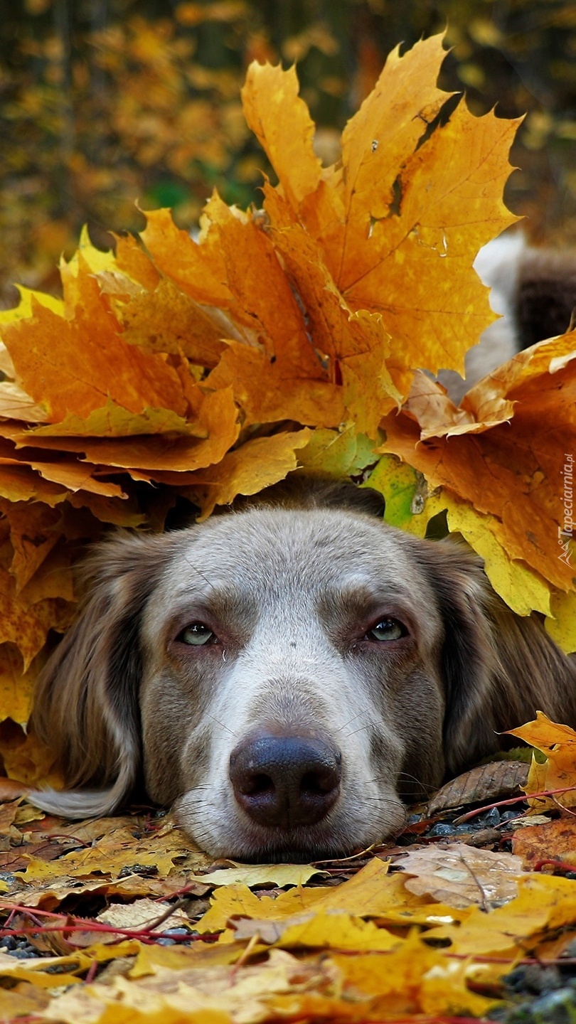 Edytor tapety: Pies pod jesiennymi liśćmi