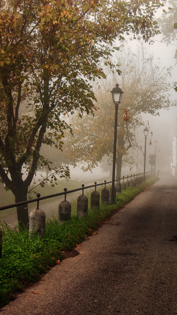 Edytor tapety: Zamglona alejka w parku