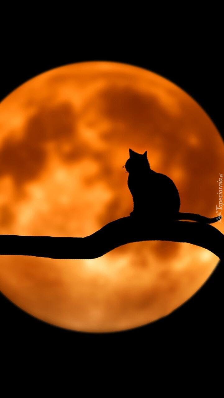 Edytor tapety: Kot na tle księżyca w 2D