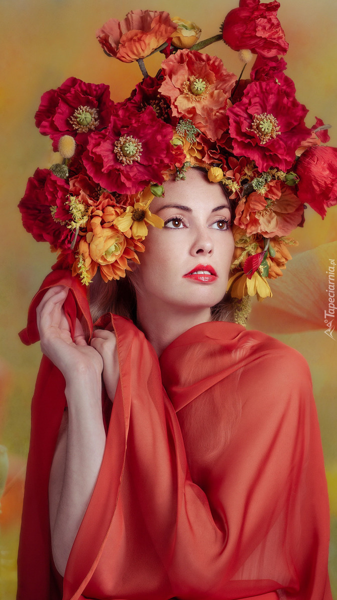 Edytor tapety: Kobieta w czerwonej chuście i wianku
