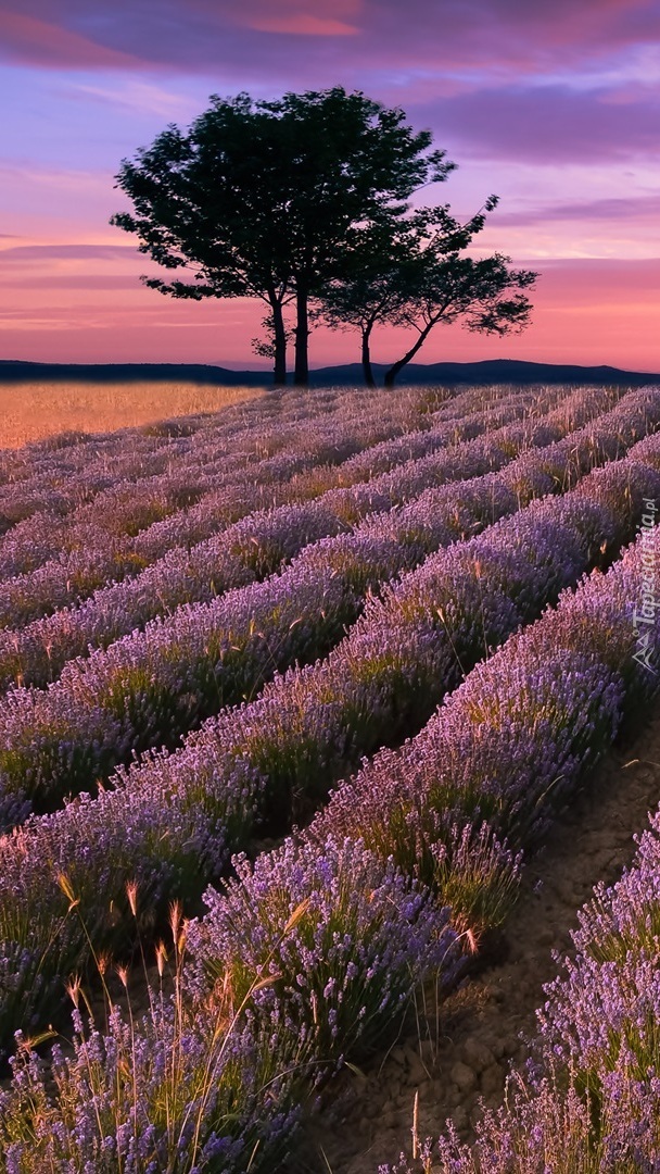 Edytor tapety: Drzewa na polu lawendy