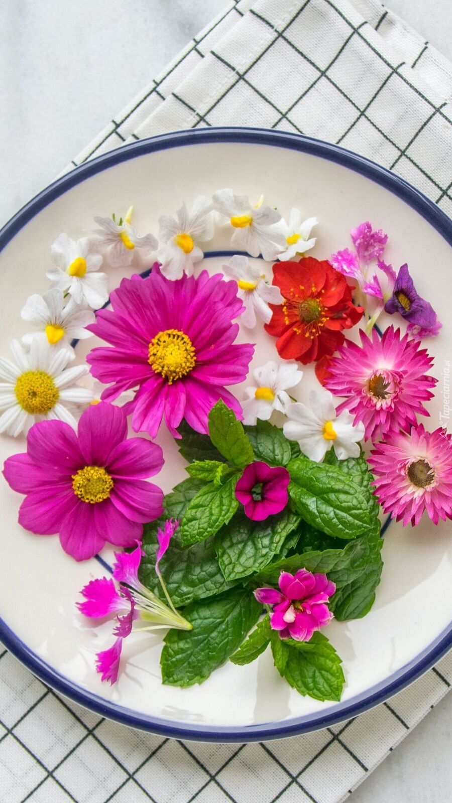Edytor tapety: Kolorowe kwiaty na talerzu