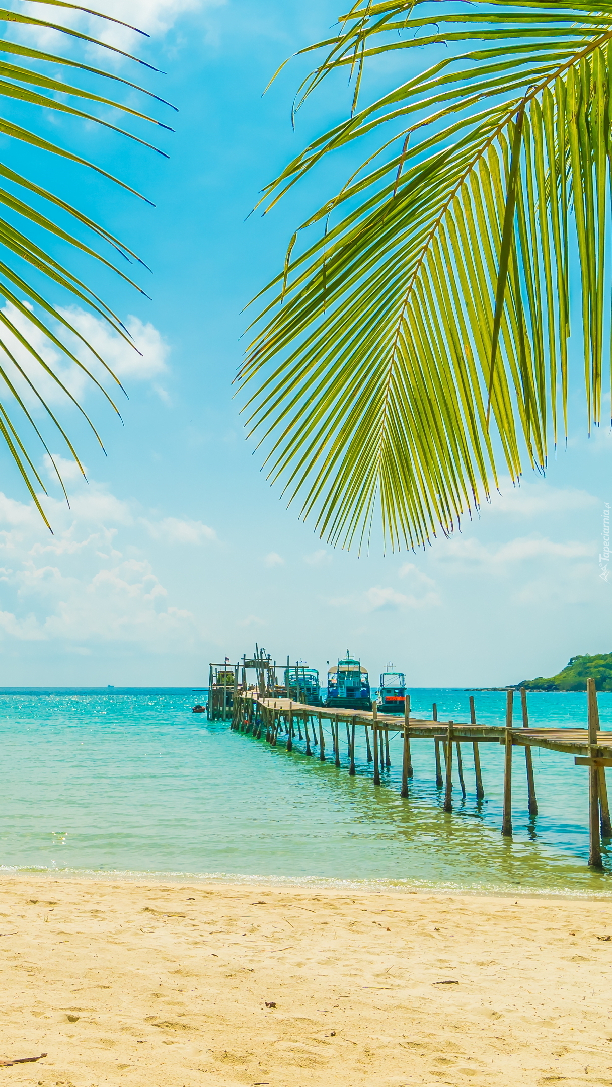 Edytor tapety: Pomost i palmy na plaży