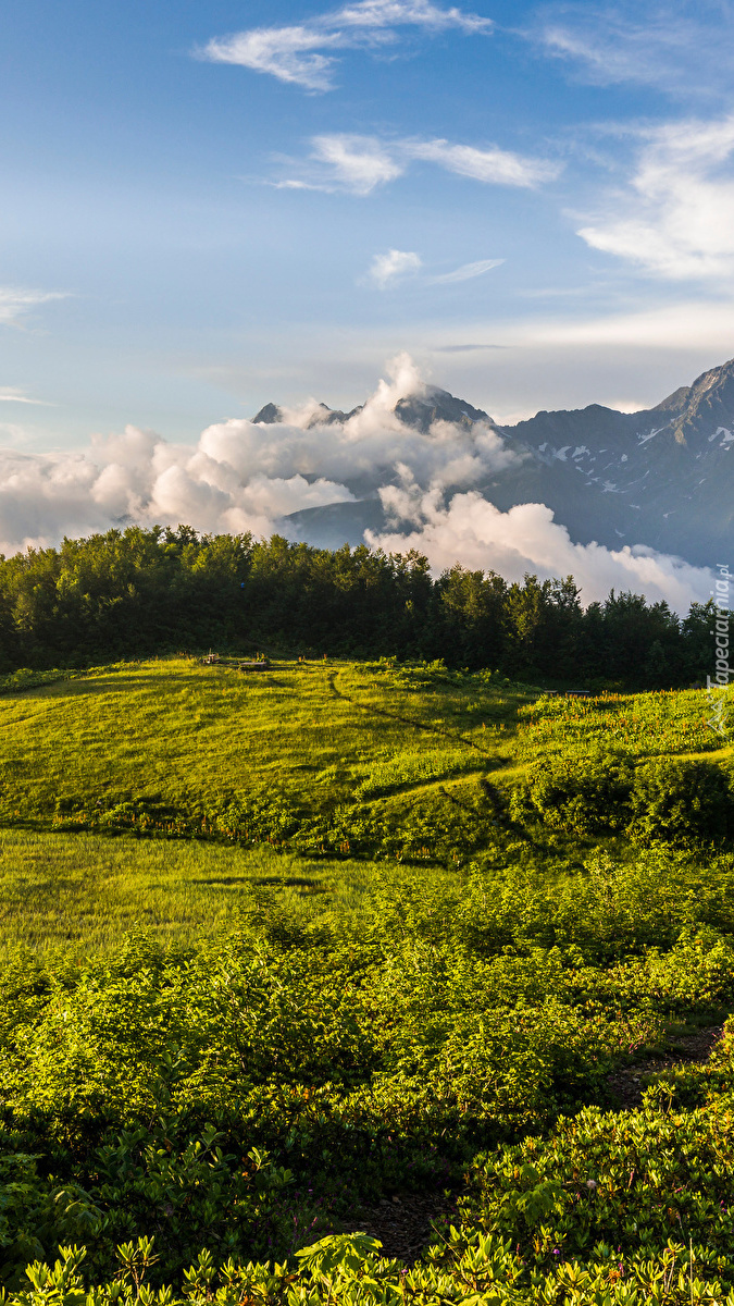 Edytor tapety: Drzewa i trawy w górach Kaukazu
