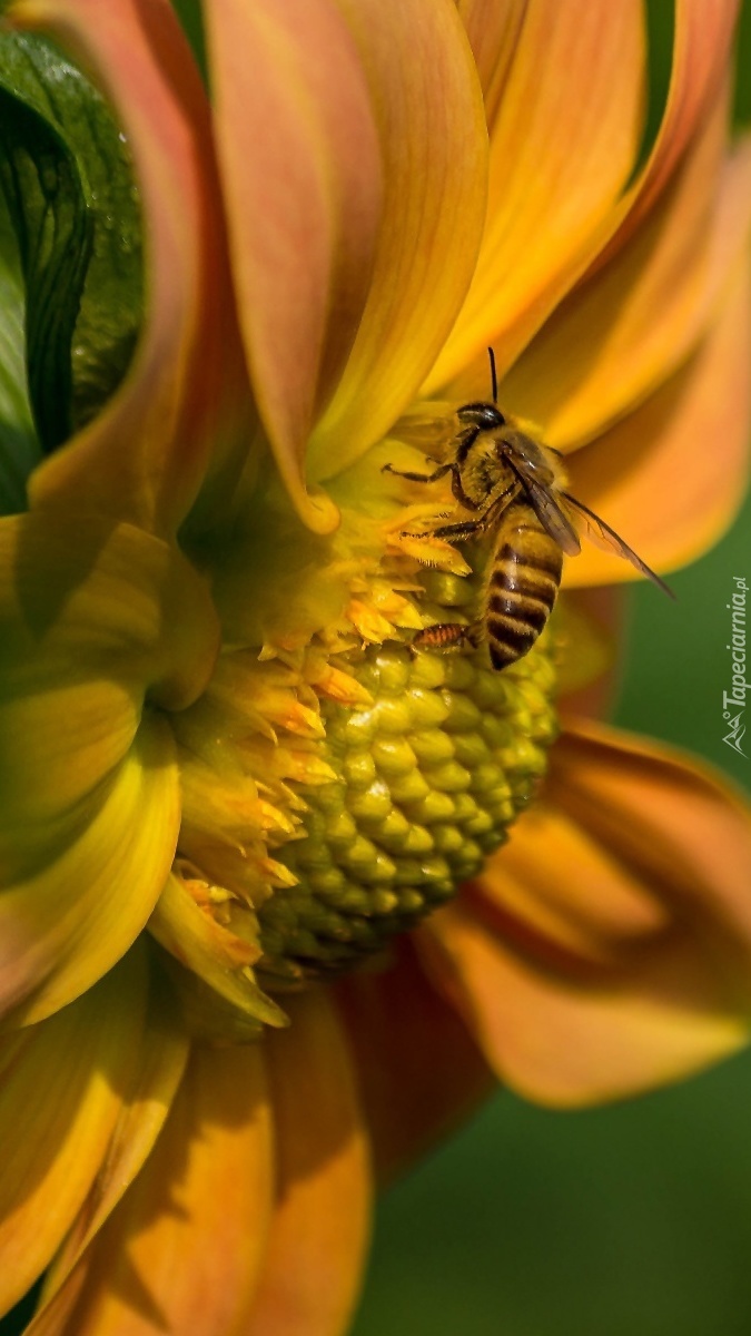Edytor tapety: Pszczoła zbiera nektar z kwiatka