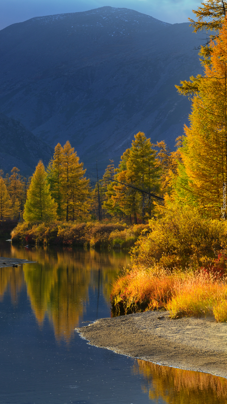 Edytor tapety: Jesienne drzewa nad rzeką Purga