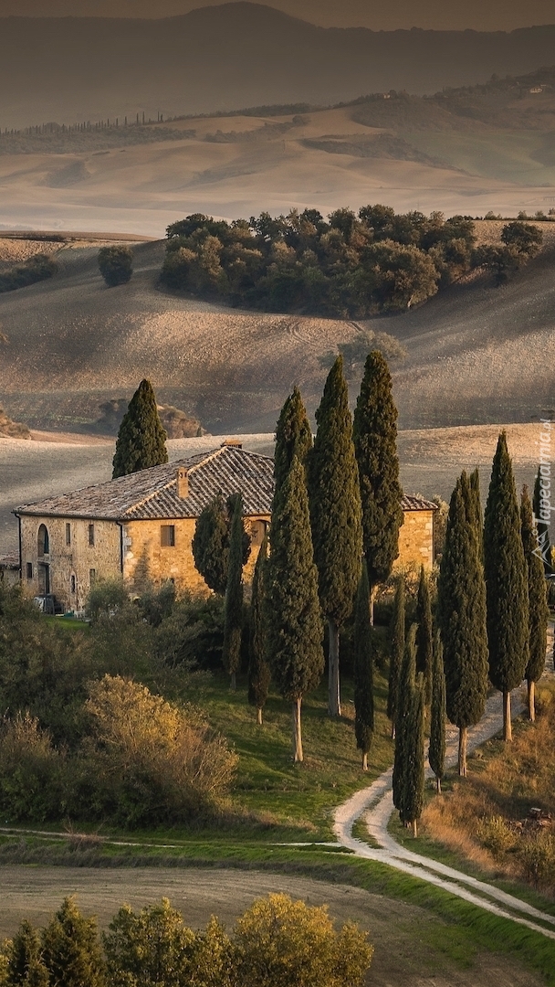 Edytor tapety: Dom wśród cyprysów w Toskanii