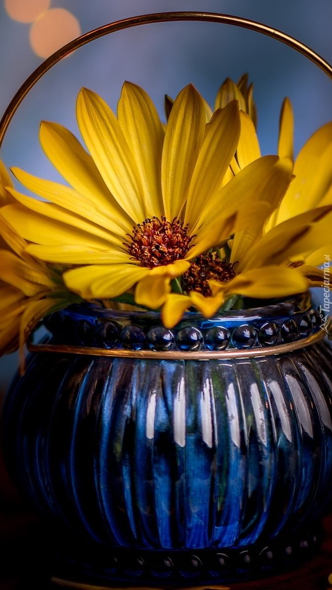 Edytor tapety: Stokrotki afrykańskie w wazonie