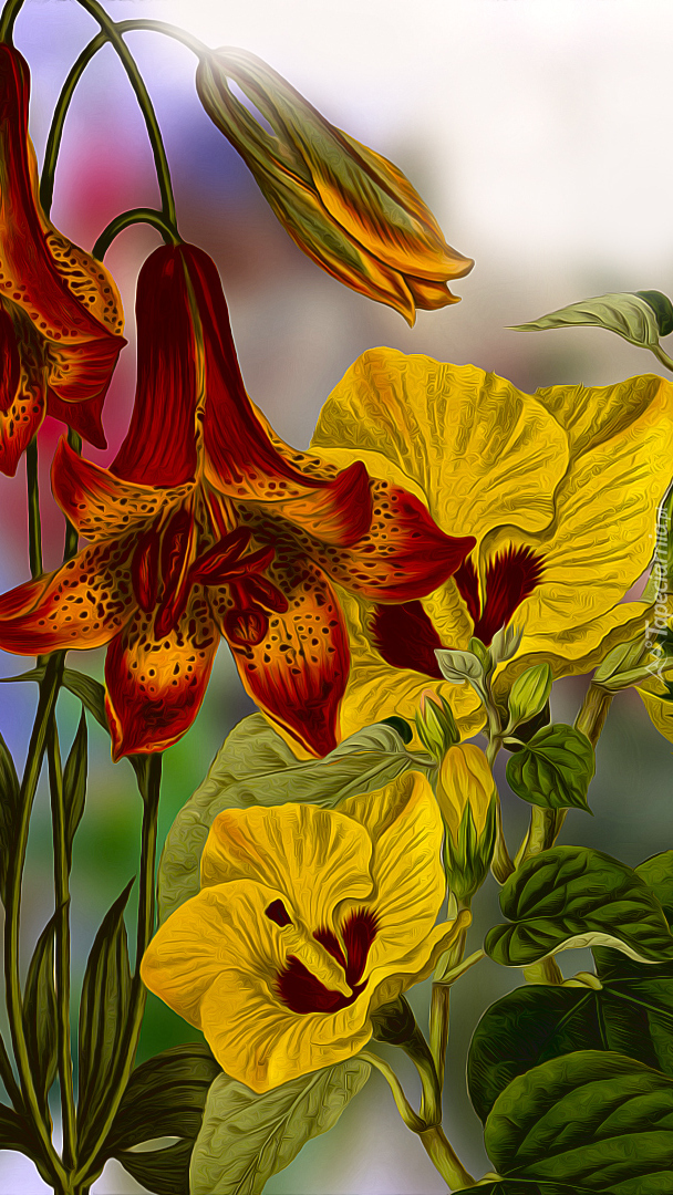 Edytor tapety: Kolorowe kwiaty w grafice