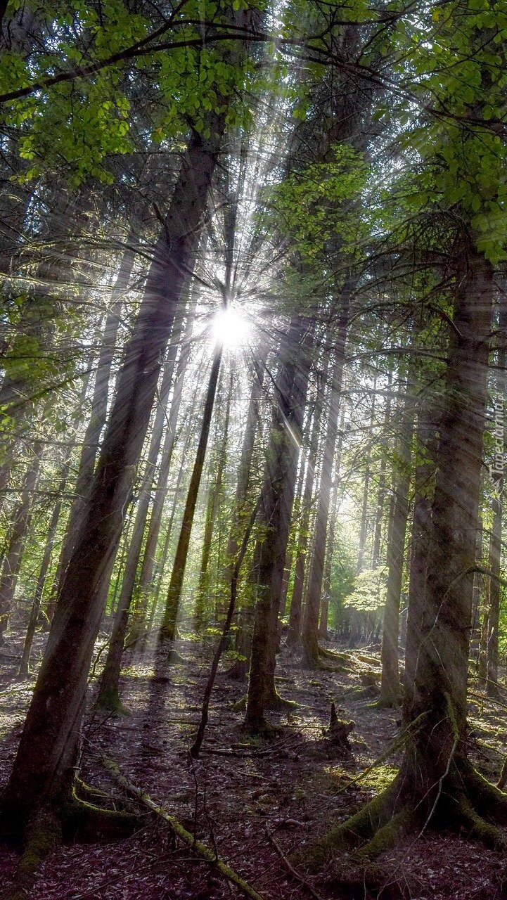 Edytor tapety: Promienie słońca w lesie