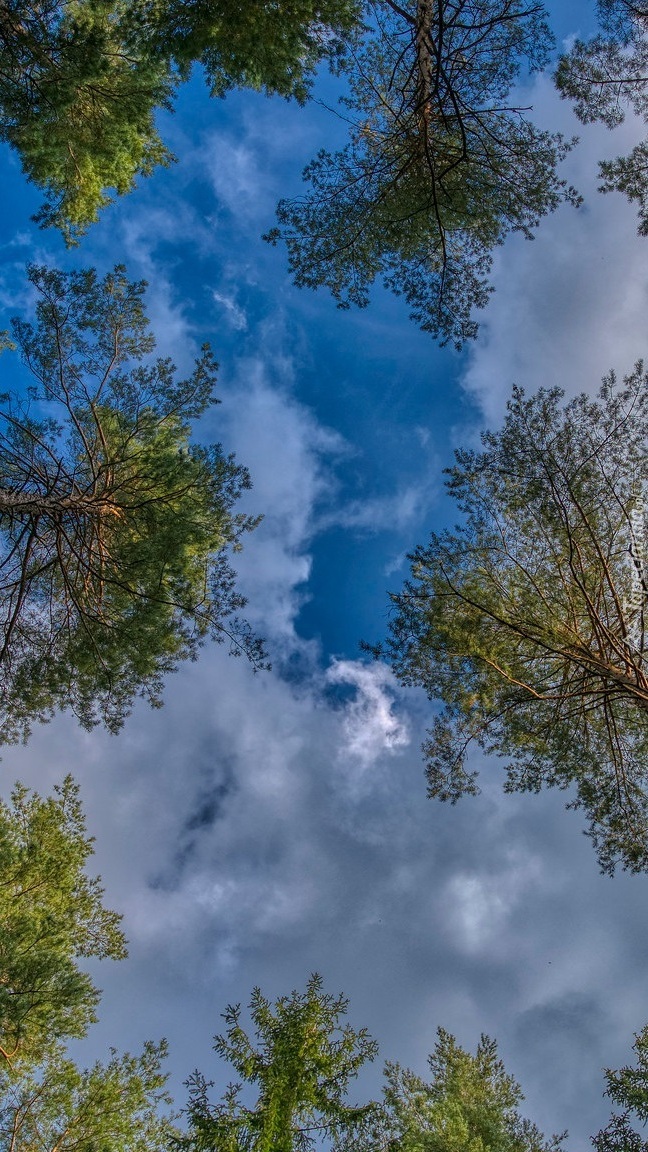 Edytor tapety: Wierzchołki drzew na tle nieba