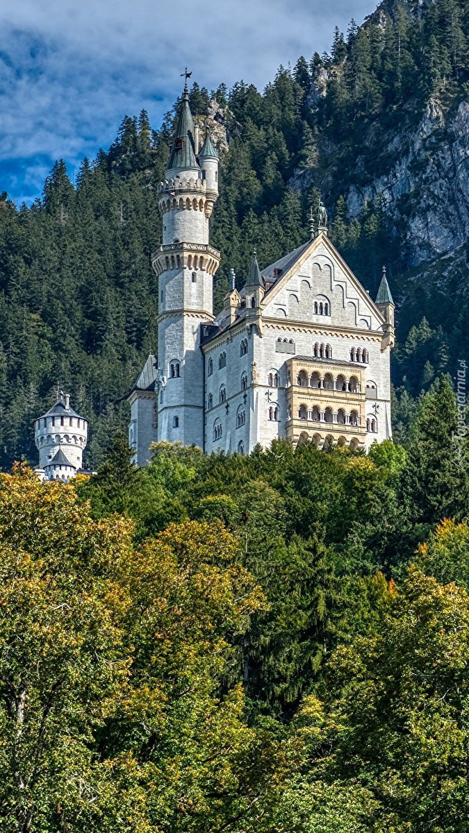 Edytor tapety: Zamek Neuschwanstein pośród drzew