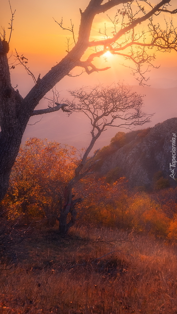 Edytor tapety: Jesienne drzewa i trawy w górach