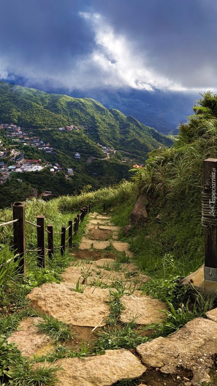Edytor tapety: Kamienne schody na wzgórzu nad doliną