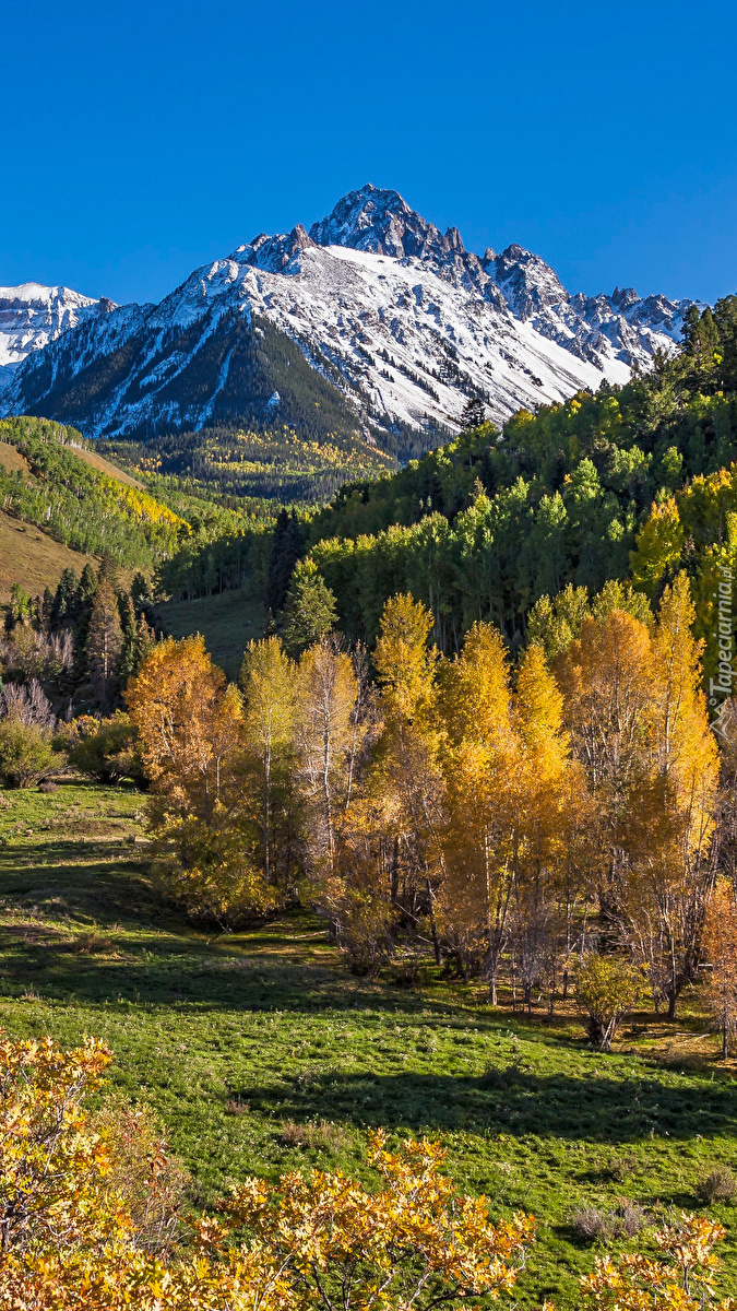 Edytor tapety: Pożółkłe drzewa i góra Mount Sneffels