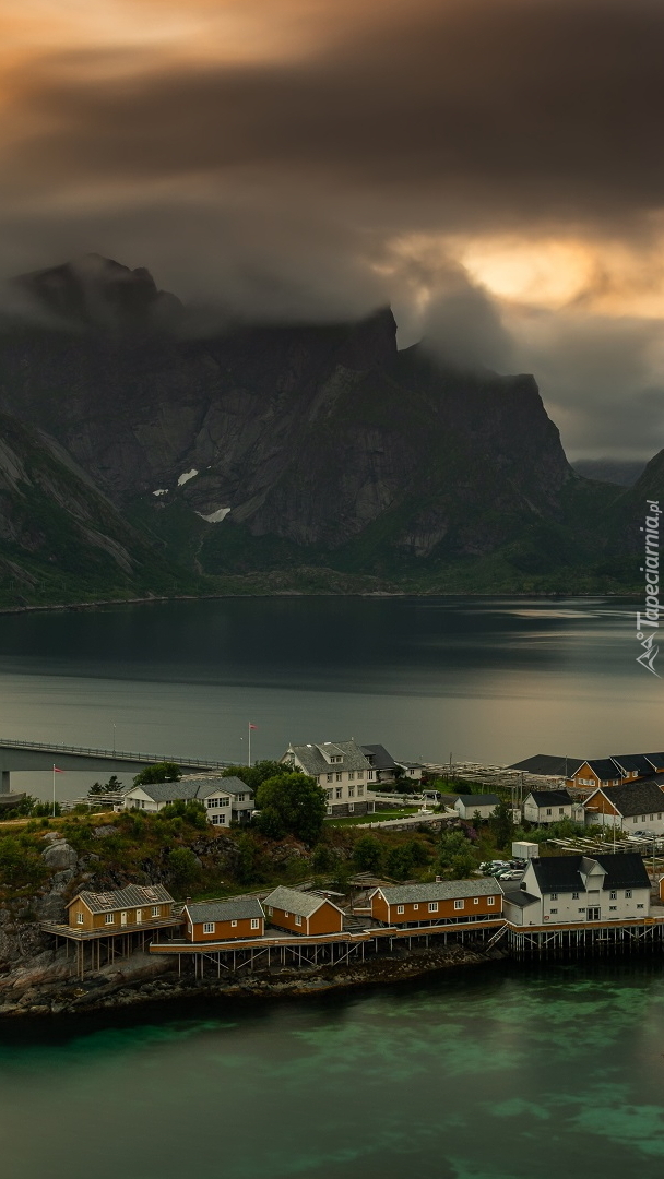Edytor tapety: Wioska Sakrisoy pod ciemnymi chmurami