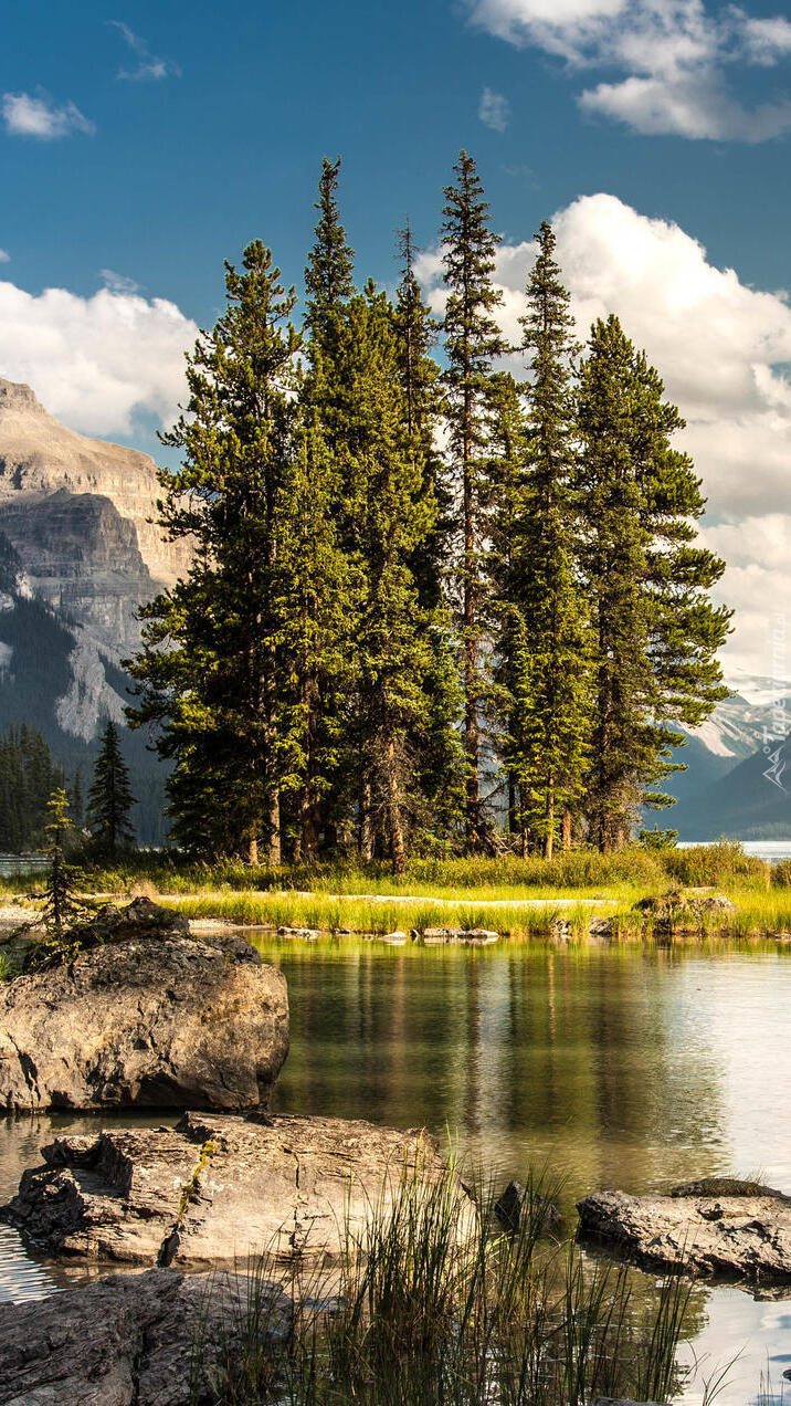 Edytor tapety: Drzewa nad jeziorem Maligne