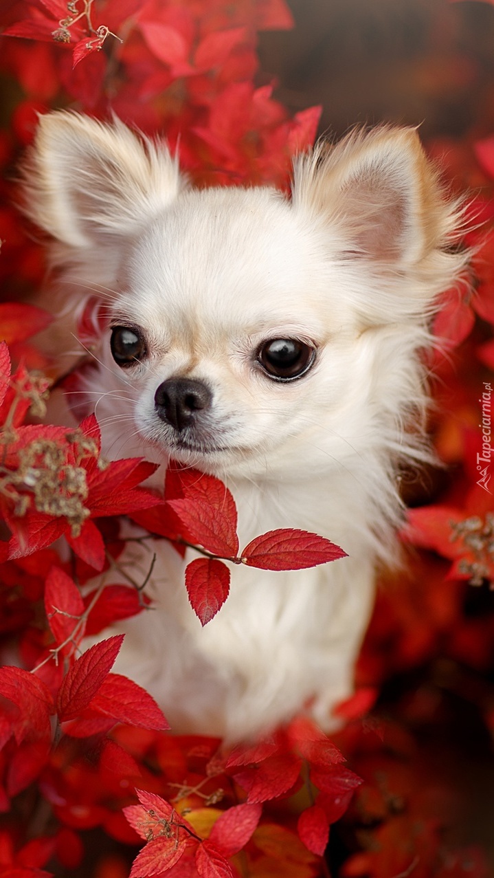 Edytor tapety: Chihuahua pośród czerwonych liści