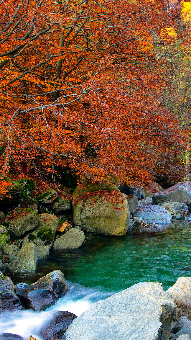 Edytor tapety: Kolorowe drzewa nad rzeką