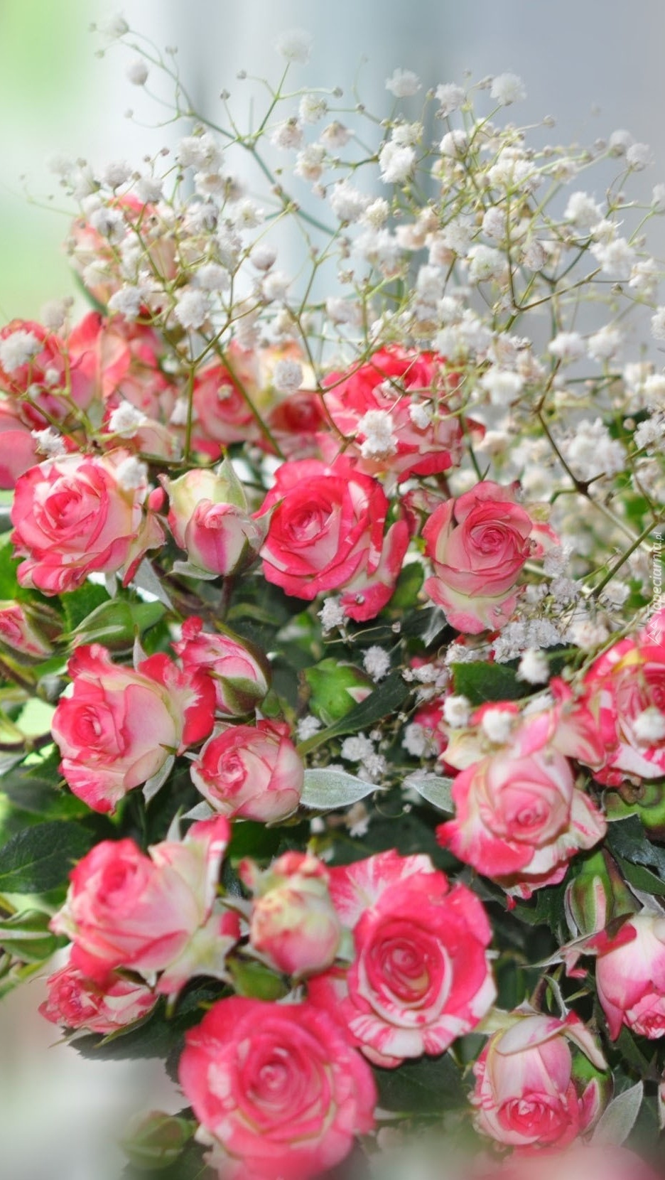 Edytor tapety: Bukiet z róż i gipsówki