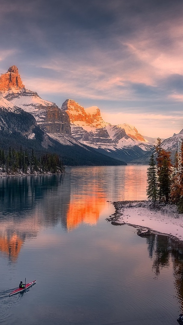 Edytor tapety: Ośnieżone góry nad jeziorem Maligne Lake