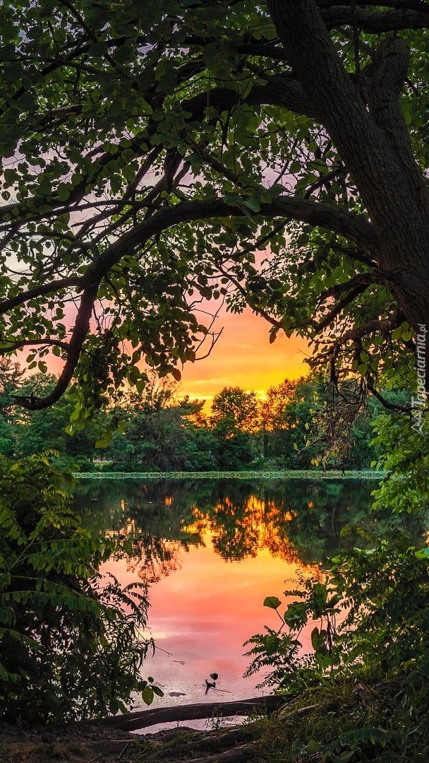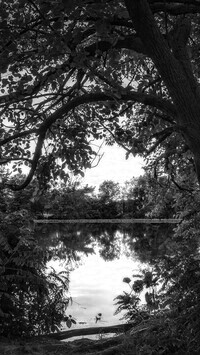Edytor tapety: Krzewy i drzewa nad jeziorem