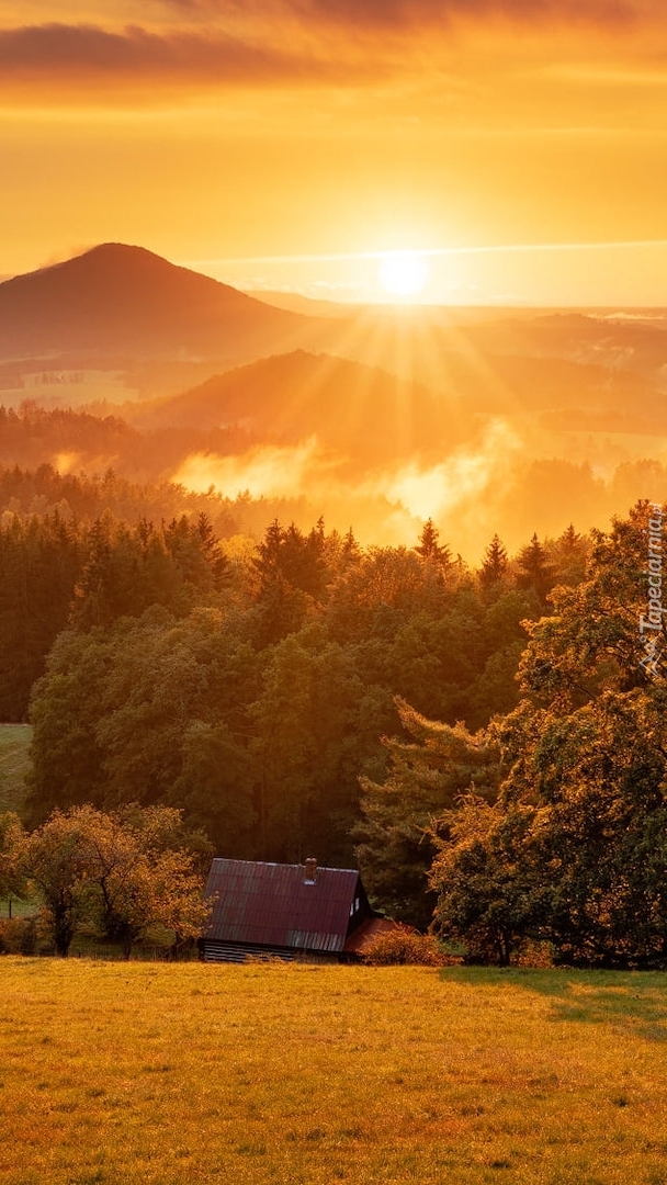 Edytor tapety: Promienie słońca nad górami