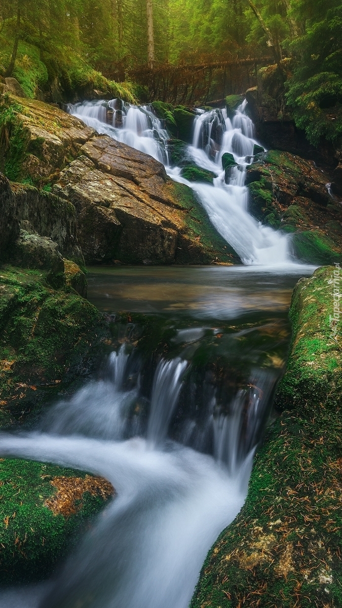 Edytor tapety: Górski potok pośród omszałych kamieni